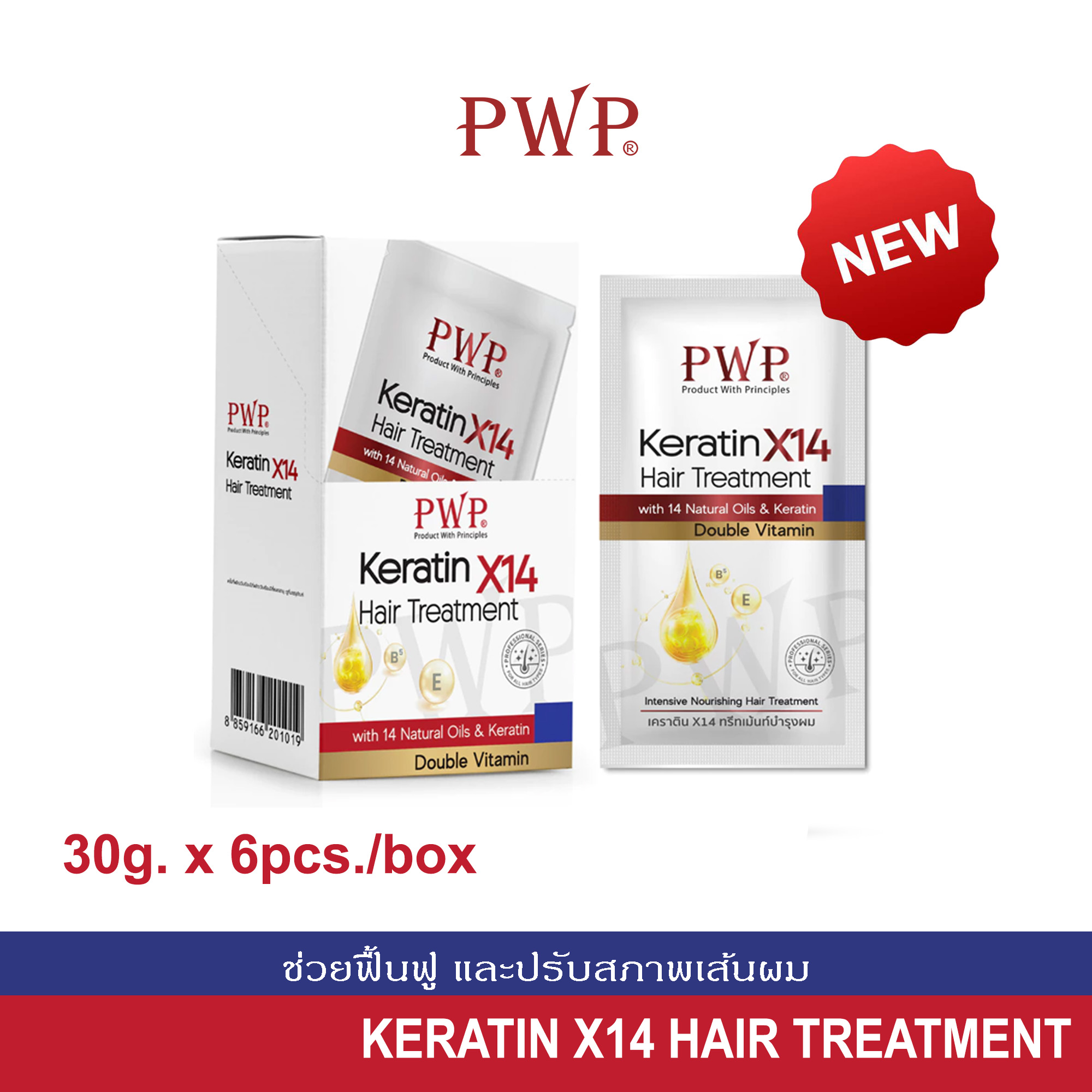 ทิ้ง ไว้ 3-5 นาที แล้วล้างออกด้วยน้ำสะอาด ปริมาณสุทธิ : 30 g/ซอง, 6 ซอง/กล่อง ผลิตภัณฑ์บำรุงเส้นผมสูตรเข้มข้น พร้อมสารบำรุงเส้นผม